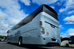 Wyposażenie autokaru: klimatyzacja, toaleta, barek, 2x lodówka, gniazda USB przy każdym fotelu, gniazda 230v, 2x TV, DVD z możliwością podłączenia karty pamięci lub pendrive’a, odchylane oraz rozsuwane fotele z duża przestrzenią na nogi, przy których znajdują się stoliki, podnóżki oraz siateczki,
